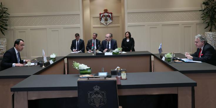 Ο Υπουργός Εξωτερικών, Νίκος Χριστοδουλίδης, συμμετείχε το πρωί στο Αμάν της Ιορδανίας, σε τριμερή συνάντηση με τους ομολόγους του της Ελλάδας, Γιώργο Κατρούγκαλο, και της Ιορδανίας, Αϊμάν Σαφάντι, πριν την έναρξη της Τριμερούς Συνόδου Κορυφής Κύπρου, Ελλάδας και Ιορδανίας.