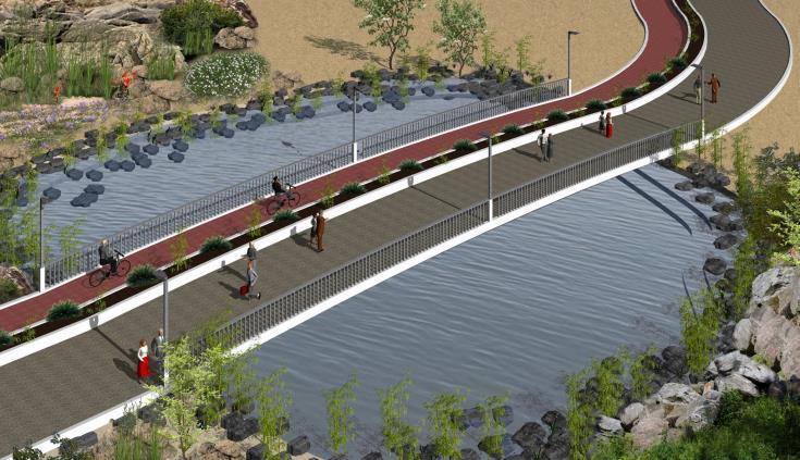 Το σχέδιο περιλαμβάνει μεταξύ άλλων πεζόδρομο και ποδηλατόδρομο κατά μήκος ολόκληρου του παραλιακού μετώπου, διαδραστική αίθουσα μάθησης για θαλάσσια και παράκτια ζωή και πάρκο φυτών και πουλιών αφού η περιοχή είναι ενταγμένη ως Ζώνη Ειδική Προστασίας στο σχέδιο Natura 2000.