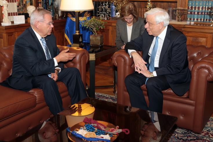 Τον Αμερικανό Γερουσιαστή του Δημοκρατικού Κόμματος Ρόμπερτ Μενέντεζ υποδέχθηκε σήμερα, Μεγάλη Δευτέρα 22 Απριλίου, ο Πρόεδρος της Ελληνικής Δημοκρατίας Προκόπης Παυλόπουλος, στο Προεδρικό Μέγαρο.