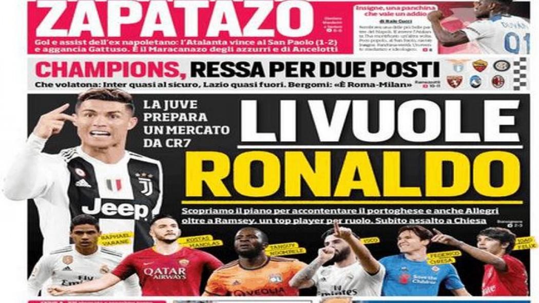 Σύμφωνα με το πρωτοσέλιδο της ιταλικής εφημερίδας «Corriere dello Sport», ο Κριστιάνο έχει ζητήσει από τη διοίκηση του συλλόγου την ενίσχυση της ομάδας το φετινό καλοκαίρι.