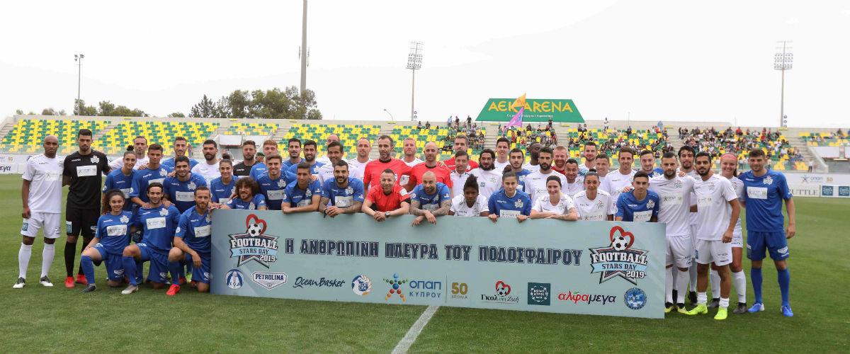 Με τους Κύπριους να επικρατούν 4-3 ολοκληρώθηκε η δεύτερη Football Stars Day στην ΑΕΚ Αρένα – «Γεώργιος Καραπατάκης». Τον αγώνα παρακολούθησαν περίπου 2.000 θεατές. Όλα τα έσοδα από την εκδήλωση θα διατεθούν για την ανέγερση της πτέρυγας που θα στεγάσει το Τμήμα Ατυχημάτων & Επειγόντων Περιστατικών.