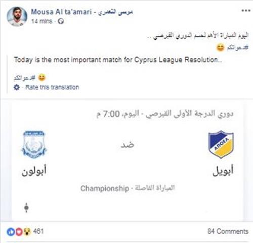 Ο διεθνής Ιορδανός του ΑΠΟΕΛ γνωστοποίησε μέσω των social media ότι είναι το πιο κρίσιμο ματς της χρονιάς… με αποτέλεσμα να γίνει χαμός!