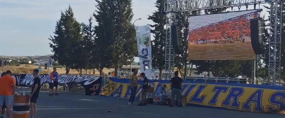 Πριν από την έναρξη της αναμέτρησης έπαιζε βίντεο με συνθήματα από παλαιότερα παιχνίδια που οι οπαδοί ήταν στις κερκίδες. Θυμίζουμε ότι η προπώληση ήταν πενιχρή (λιγότερα από 1000) ενώ και στα ταμεία, για την ώρα, δεν υπάρχει κόσμος.