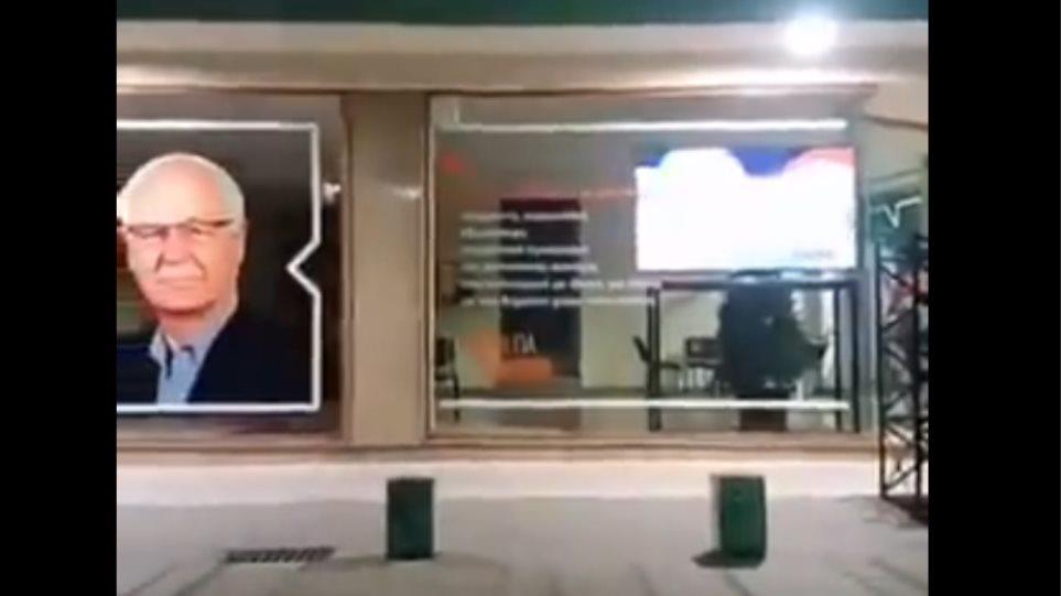 Σε μια από τις οθόνες που είχε τοποθετηθεί στην πρόσοψη του κέντρου αντί για κάποιο προεκλογικό σποτάκι, μεταδόθηκαν εικόνες πορνό.