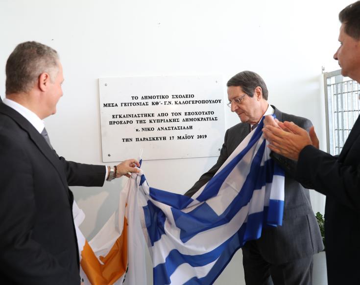 Σε χαιρετισμό του, στην τελετή εγκαινίων του Δημοτικού Σχολείου Μέσα Γειτονιάς ΚΘ΄ - Γ.Ν. Καλογερόπουλου, ο Πρόεδρος Αναστασιάδης ανέφερε ότι "δεν μπορεί να νοείται σύγχρονο κράτος χωρίς παροχή υψηλού επιπέδου παιδεία και ανάλογου επιπέδου υλικοτεχνική υποδομή για να τη στηρίζει", υπενθυμίζοντας παράλληλα ότι "παρά το γεγονός πως ως κράτος και κοινωνία αφιερώνουμε ένα σημαντικό μέρος του προϋπολογισμού μας για την παιδεία,  το μεγαλύτερο ποσοστιαία από όλα τα κράτη μέλη της Ευρωπαϊκής Ένωσης, δυστυχώς τα μαθησιακά αποτελέσματα  δεν είναι αυτά που προσδοκούμε".