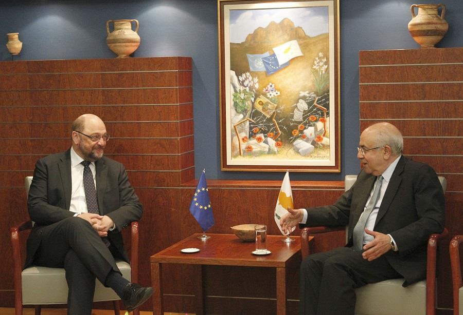 Προσφωνώντας τον κ. Σουλτς, ο Πρόεδρος του σώματος Γιαννάκης Ομήρου είπε πως η Κύπρος έχει επιδείξει ισχυρή θέληση και προσήλωση στην προσπάθεια εξεύρεσης ευρωπαϊκής λύσης στο ζήτημα της προσφυγικής κρίσης, παρά τις έντονες ανησυχίες που βασίζονται στο ρόλο της Τουρκίας.