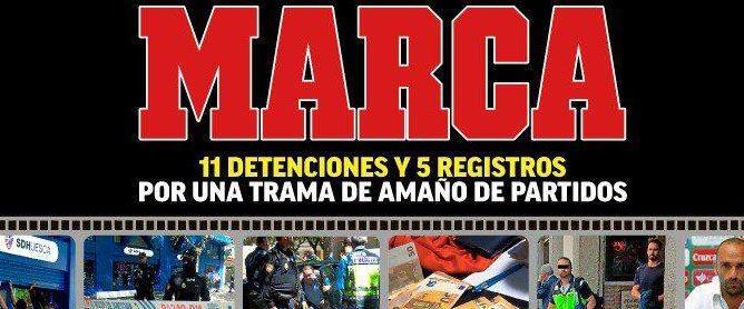 Τρομερό πρωτοσέλιδο από τη Marca, το πρωί της Τετάρτης, με την εφημερίδα να... πενθεί για την κατάσταση του ισπανικού ποδοσφαίρου μετά και την αποκάλυψη για το κύκλωμα στημένων αγώνων και τις συλλήψεις. Ανάμεσα σε αυτούς που έπεσαν στα χέρια της Αστυνομίας, ο άλλοτε αμυντικός των Ολυμπιακού και Άρη, Ραούλ Μπράβο...