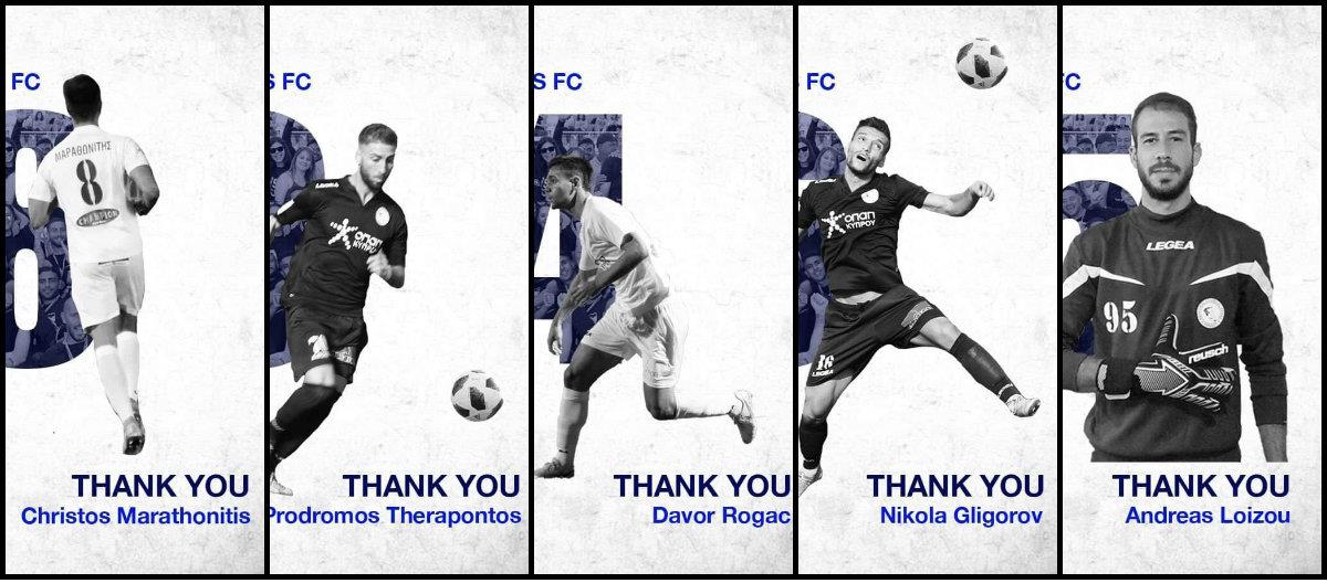 Η Διοίκηση και ο Πρόεδρος του Εθνικού Άχνας θέλουν να ευχαριστήσουν θερμά τους ποδοσφαιριστές Davor Rogac, Χρήστο Μαραθωνίτη, Nikola Gligorov, Πρόδρομο Θεράποντος και Ανδρέα Λοίζου για την συνεισφορά τους την φετινή χρονιά.