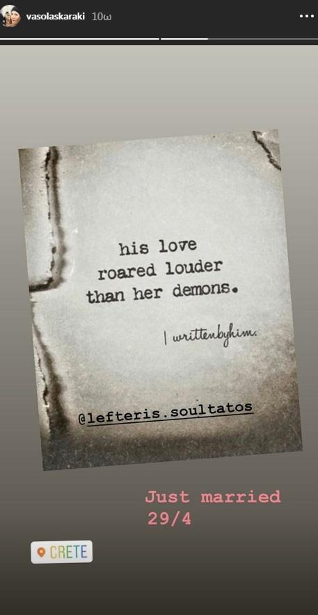 Ο γάμος έγινε σε κλειστό οικογενειακό κύκλο, ενώ η Βάσω Λασκαράκη επιβεβαίωσε το γεγονός μέσα από τον λογαριασμό της στο Instagram, ανεβάζοντας ένα ιδιαίτερο story…