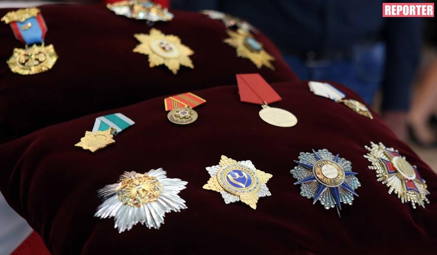 Τα παράσημα που έλαβε ο αποθανών Πρόεδρος εκτίθενται πάνω στο φέρετρό του που μεταφέρθηκε για λαϊκό προσκύνημα στο οίκημα της ΠΕΟ από τις εννέα το πρωί μέχρι τις 2 και 30 το μεσημέρι.