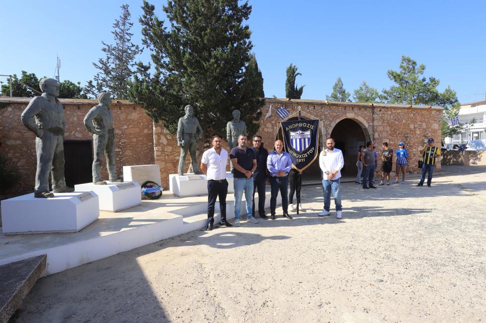Κατάθεση στεφάνων στους ήρωες του Λιοπετρίου έκαναν οπαδοί και αντιπροσωπεία του Δ.Σ. της Ανόρθωσης, μια ώρα πριν την καθιερωμένη πρώτη προπόνηση της νέας σεζόν.