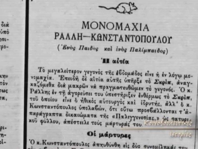 Ο Κωνσταντόπουλος ήθελε να μονομαχήσει και με τον βουλευτή Αθανάσιο Ευταξία αλλά δεν υλοποιήθηκε η πρόκληση του, ενώ και ο βουλευτής Σούτσος στη μέση της οδού Σταδίου χτύπησε με τη μαγκούρα του τον πρόεδρο των σιδηροδρόμων Παρασκευαΐδη και την διένεξη ανέλαβε να γεφυρώσει ο πρώτος αστυνομικός διευθυντής Δημήτριος Μπαϊρακτάρης πριν οι δύο άνδρες οδηγηθούν στην έσχατη λύση της μονομαχίας.