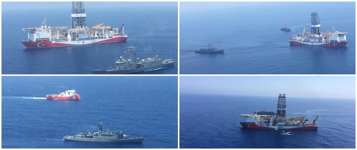 Στις φωτογραφίες εμφανίζονται τα δύο γεωτρύπανα να συνοδεύονται από πλοία του πολεμικού ναυτικού της χώρας που τα προστατεύουν. Την ίδια ώρα δημοσιεύονται και φωτογραφίες από το Barbaros που βρίσκεται ανοιχτά της Λεμεσού και διενεργεί σεισμικές έρευνες.