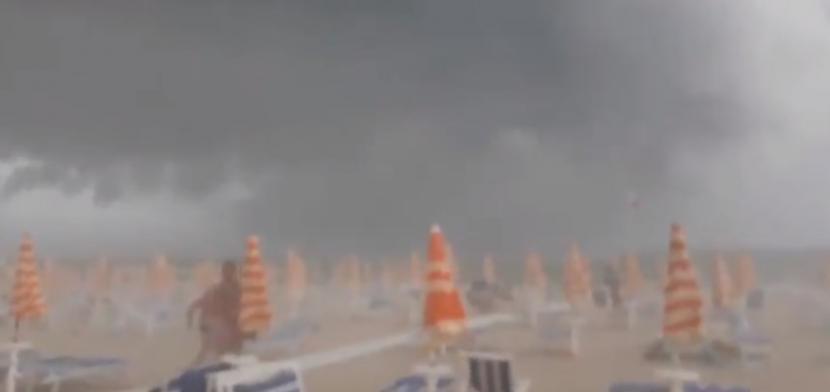 Πανικόβλητοι έτρεχαν να σωθούν από τη μανία της φύσης λουόμενοι στην δημοφιλή παραλία Τορτορέτο στην Ιταλία, όταν ξαφνικό μπουρίνι σάρωσε την περιοχή της Αδριατικής στη χώρα.