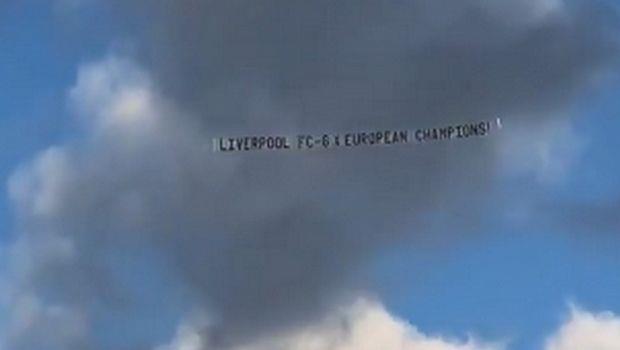 Όπως θα δείτε στο video που ακολουθεί, το αεροπλάνο κουβαλούσε ένα πανό που ανέφερε: "Λίβερπουλ, έξι φορές πρωταθλήτρια Ευρώπης". Το σούπερ στιγμιότυπο έχει γίνει viral στα social media, με τους ευρηματικούς οπαδούς των "Κόκκινων" να δέχονται μαζικά συγχαρητήρια από φιλάθλους των πρωταθλητών Ευρώπης σε όλο τον κόσμο: