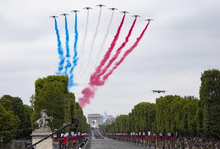 Το δημόσιο τηλεοπτικό δίκτυο France 2 μετέδωσε νωρίτερα ότι περίπου 20 με 50 διαδηλωτές που βρίσκονταν ανάμεσα στο συγκεντρωμένο πλήθος πριν ξεκινήσει η στρατιωτική παρέλαση γιουχάισαν τον Γάλλο πρόεδρο Εμανουέλ Μακρόν. Κάποιοι μάλιστα άφησαν στον αέρα κίτρινα μπαλόνια, ένα σύμβολο του κινήματος των Κίτρινων Γιλέκων, σύμφωνα με τον σταθμό.