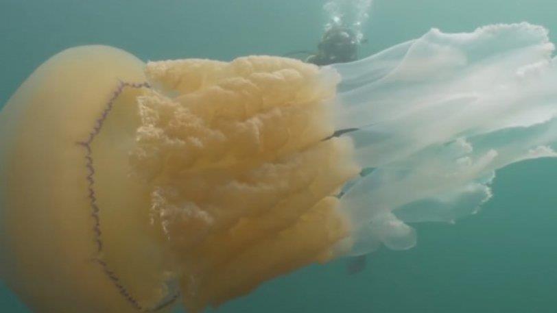 H τσούχτρα που έχει ψευδώνυμο «dustbin-lid jellyfish» ήταν τόσο μεγάλη που έκανε τη δύτρια να μην φαίνεται!
