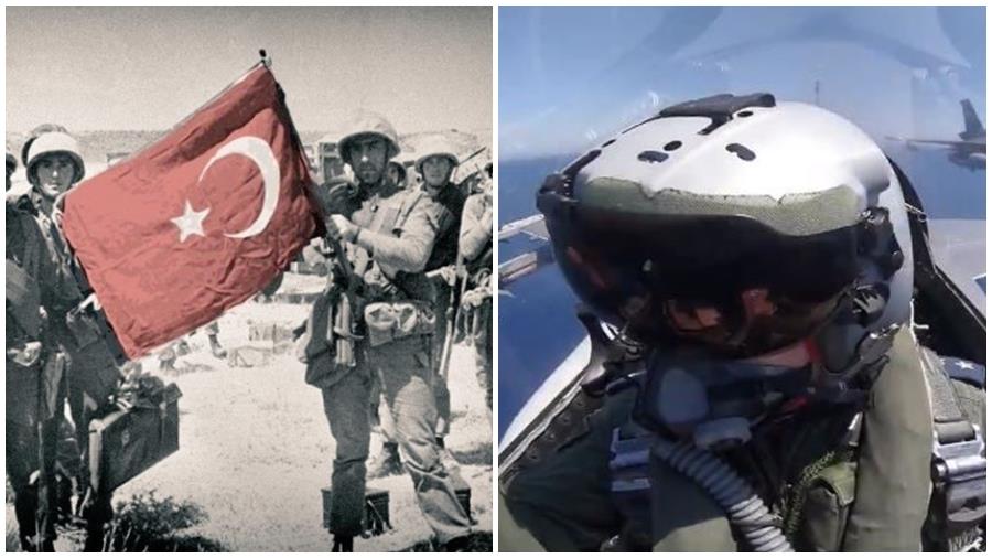 «Μαζί με τους ήρωες της Ειρηνευτικής Επιχείρησης, που έφεραν την ειρήνη στην Κύπρο πριν από 45 χρόνια, ανακουφίζοντας τους αδελφούς μας από την τυραννία και τον πόνο, τιμούμε παράλληλα με ιδιαίτερη ευγνωμοσύνη όλους τους ήρωες και τους βετεράνους μας», αναφέρεται στο μήνυμα του τουρκικού υπουργείου Άμυνας, που συνοδεύει το βίντεο κλιπ.