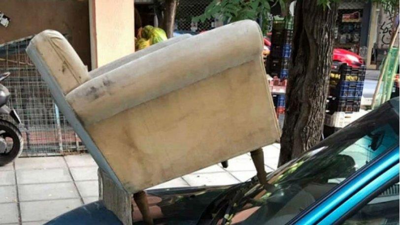 Όπως μπορείτε να δείτε στις φωτογραφίες αναγνωστών του Thestival.gr, στο καπό του ΙΧ τοποθέτησαν μία… πολυθρόνα!