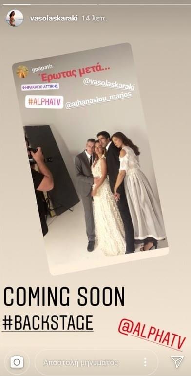 Συγκεκριμένα, η Βάσω Λασκαράκη βρέθηκε στα παρασκήνια της φωτογράφισης της σειράς και από εκεί ανέβασε στα instastories κάποια κοινά στιγμιότυπα με τους συμπρωταγωνιστές της.