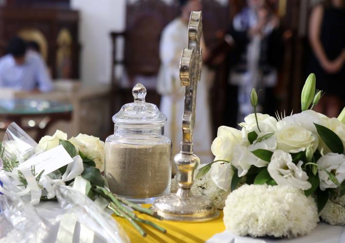 Στο φέρετρο που ήταν καλυμμένο με την κυπριακή σημαία και τη σημαία του δήμου Αμμοχώστου, τοποθετήθηκε δίπλα στο σταυρό ένα βαζάκι με άμμο από την κατεχόμενη πόλη του Ευαγόρα.