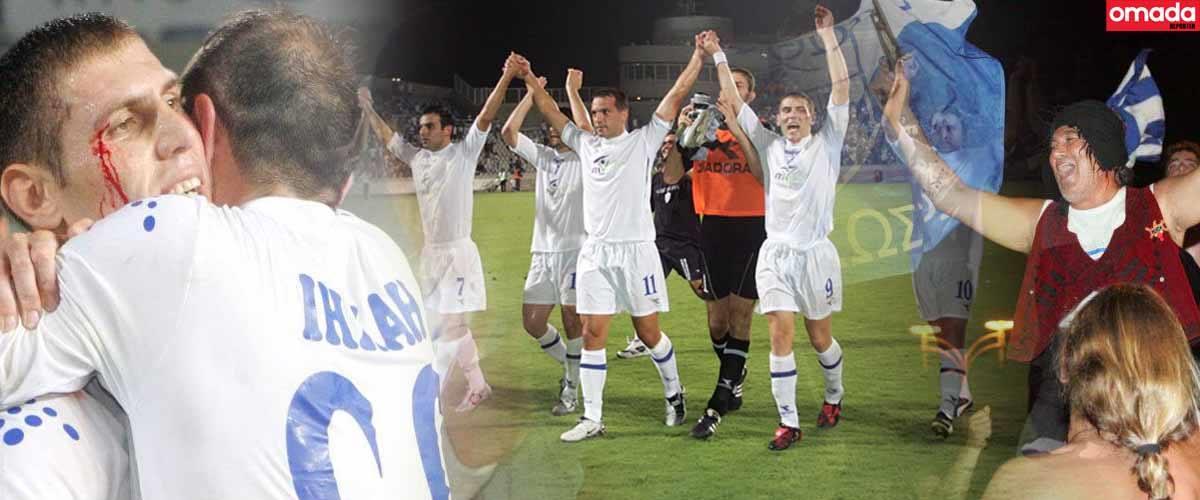 Θυμάσαι ακόμα και τον «ύμνο» του Στέλιου Χιώτη στο τέλος του αγώνα, που ίσως εκείνη τη μέρα να ακουγόταν μέχρι εκεί που έφθανε η τελευταία σπιθαμή γης πάνω στην πολύπαθη αυτή χώρα...