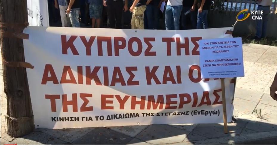 Πραγματοποιείται αυτή την ώρα έξω από την Βουλή των Αντιπροσώπων εκδήλωση διαμαρτυρίας με θέμα: «Κανένα σπίτι στα χέρια τραπεζίτη» ενόψει της συνεδρίας της ολομέλειας της Βουλής που αναμένεται να συγκληθεί με καθυστέρηση για συζήτηση των αναπομπών της νομοθεσίας για τις εκποιήσεις.