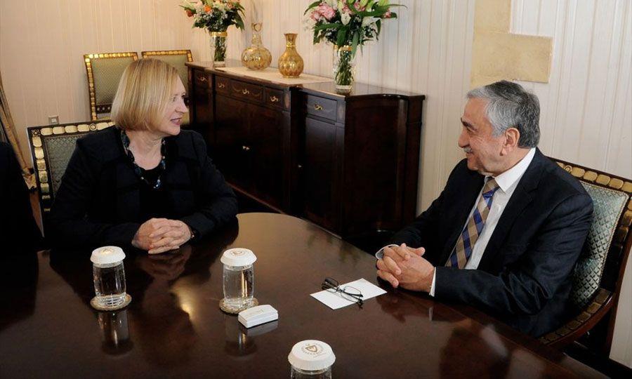 Η Ειδική Απεσταλμένη του ΓΓ του ΟΗΕ Ελίζαμπεθ Σπέχαρ είχε σήμερα συνάντηση με τον Τουρκοκύπριο ηγέτη Μουσταφά Ακιντζί, στο πλαίσιο των επαφών της πριν από την προγραμματισμένη συνάντηση των δύο ηγετών στις 9 Αυγούστου.