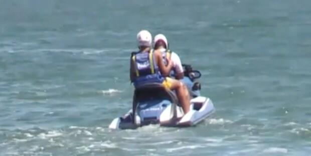 Ενώ η λογομαχία μεταξύ αστυνομικών και δημοσιογράφου συνεχίζεται με έντονο τρόπο στην παραλία, κάποιος φωνάζει προς την κατεύθυνση του τζετ σκι να επιστρέψει στην ξηρά, αλλά βγαίνοντας από ένα απομακρυσμένο σημείο της παραλίας, μακριά από αδιάκριτα βλέμματα και κινητά.