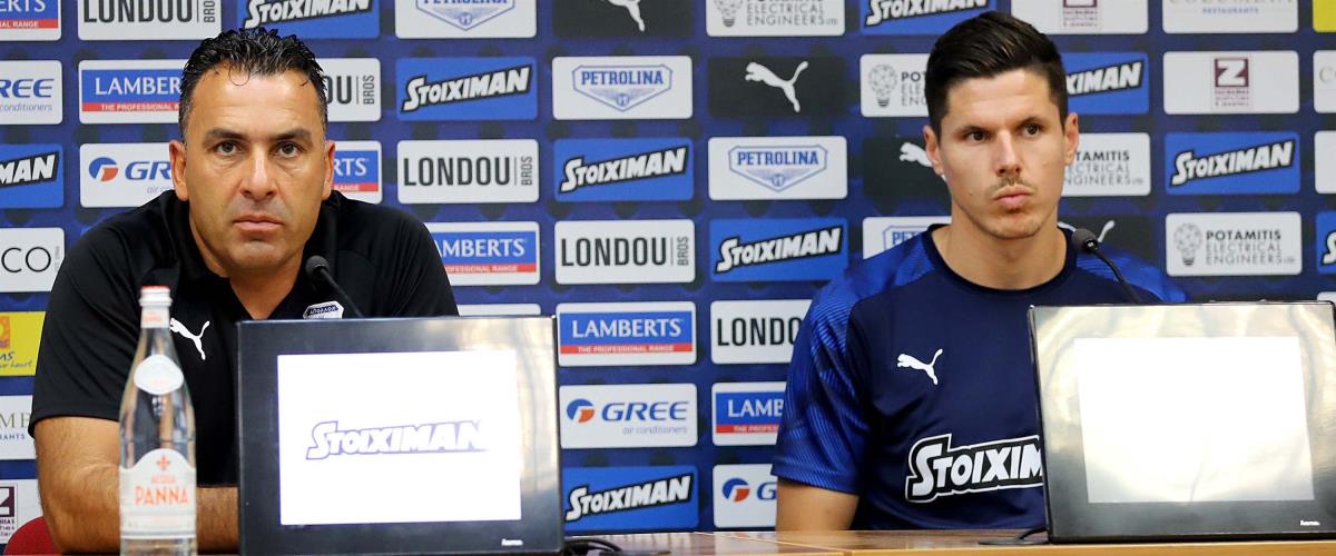 «Σας καλωσορίζω στη συνέντευξη. Πολύ σημαντικό παιχνίδι, το γνωρίζουμε όλοι. Ξέρουμε ακριβώς τι να κάνουμε για να ανατρέψουμε το σκορ. Ξέρουμε τις δυσκολίες, ξέρουμε τι θα αντιμετωπίσουμε. Δουλέψαμε όλοι μαζί, αυτό δεν θα γίνει από το πρώτο λεπτό αλλά μέχρι το 90», ανέφερε αρχικά ο Κύπριος κόουτς και πρόσθεσε, «θέλει συγκέντρωση και πρέπει να έχουμε μέχρι το τέλος. Μιλήσαμε με τους παίκτες, είναι πολύ καλά και μπορούν να ανταποκριθούν. Πιστεύω στη πρόκριση. Όταν αντιμετωπίσαμε την Αμπερντίν, ο προπονητής ήταν στην εξέδρα. Επίσης στην εξέδρα είχε 7000 προπονητές, οι οποίοι έσπρωξαν την ομάδα στην ανατροπή. Γνωρίζω τις δυσκολίες που αντιμετωπίζει ο κόσμος ωστόσο αύριο τους έχουμε ανάγκη».