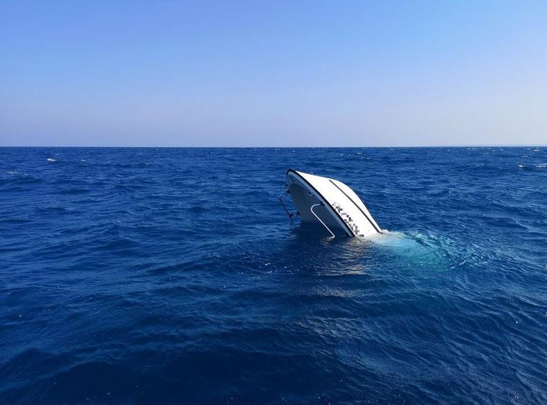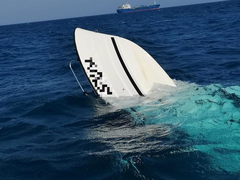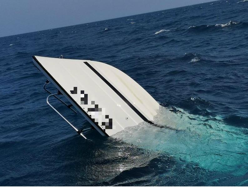 Στις 4μ.μ., η αστυνομική άκατος εντόπισε και προσέγγισε το εν λόγω σκάφος, μεγάλο μέρος του οποίου βρισκόταν κάτω από την επιφάνεια της θάλασσας. Τα έξι πρόσωπα, που επέβαιναν στο σκάφος, τέσσερις ενήλικες και δύο παιδιά, βρίσκονταν εντός της θάλασσας και καλούσαν για βοήθεια.