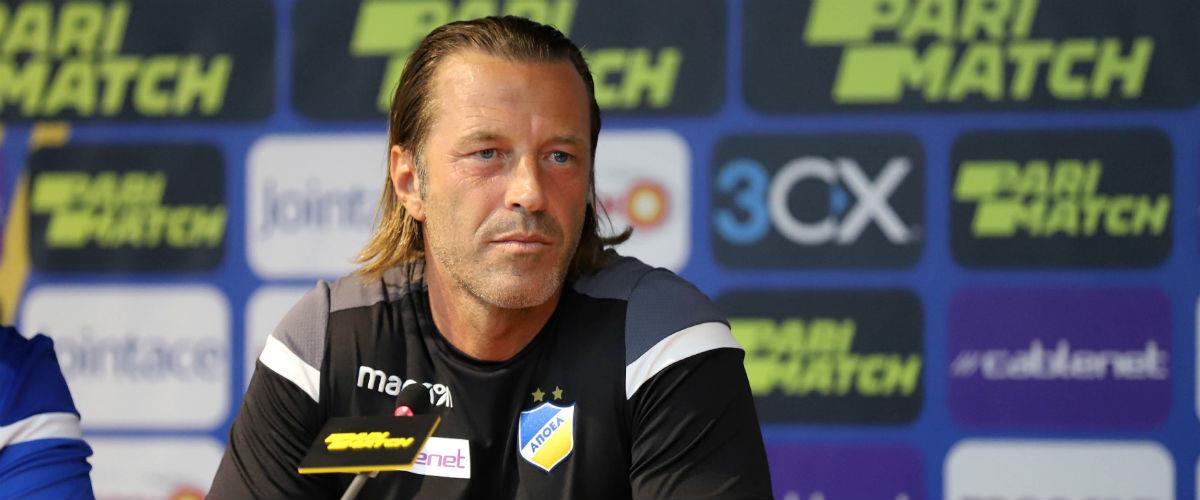 Για το ρίσκο να αγωνίζεται με τρείς αμυντικούς: «Δεν έχει σχέση πως θα παίξουμε. Από τότε που ήρθα αγωνιζόμαστε με αυτό το σύστημα και καταφέραμε να κερδίσουμε τον Απόλλωνα, να πετύχουμε τα περισσότερα γκολ και να δεχθούμε τα λιγότερα. Οι παίκτες μου είναι αυτοί που θέλουν να αγωνίζονται με τρεις πίσω. Έχουμε δύσκολο έργο αύριο, αυτό που θέλω να πω δεν είναι στο σύστημα, μπορεί να παίζουμε με 10 πίσω και να δεχθούμε γκολ. Μπορεί να μην είναι το καλύτερο σύστημα όμως μας δίνει αυτοπεποίθηση και με αυτό θα νιώθουμε άνετα».
