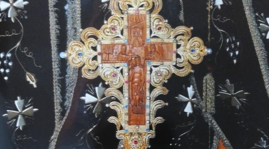 Πρόκειται για ένα ξυλόγλυπτο, ασημένιο, επιχρυσωμένο σταυρό, που περιέχει τίμιο ξύλο, ύψους 45 εκατοστών και η αξία του ανέρχεται γύρω στις 2.500 ευρώ.