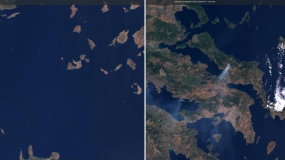 Δορυφορική αποτύπωση της πυρκαγιάς έχουν δώσει η ευρωπαϊκή υπηρεσία Copernicus μέσω του δορυφόρου Sentinel-3 και οι υπηρεσίες του Αστεροσκοπείου Αθηνών.