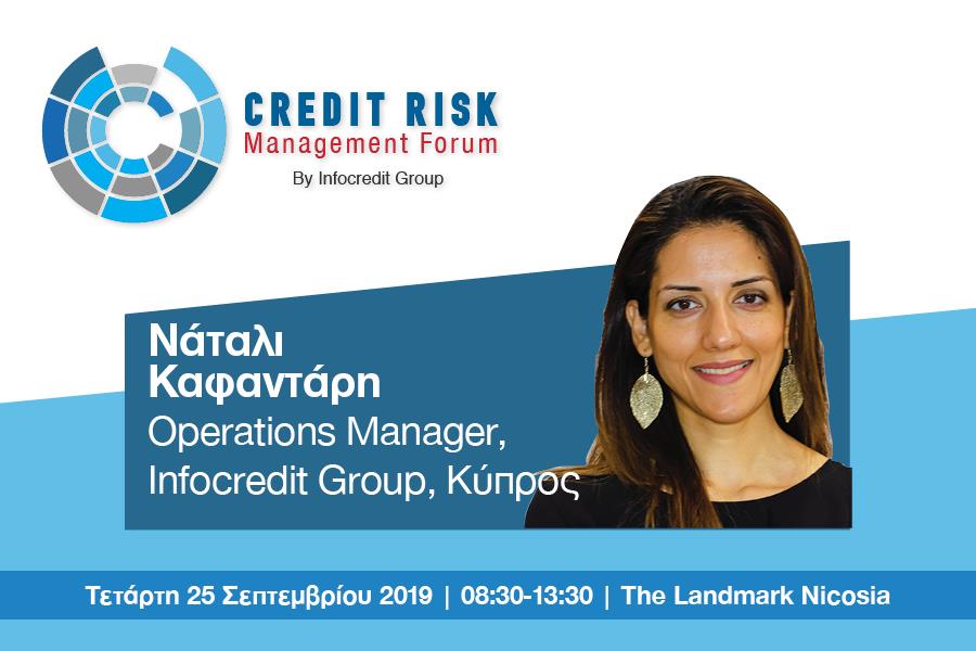 Η Νάταλι Καφαντάρη, Operations Manager της Infocredit Group, θα είναι μία από τους ομιλητές του Credit Risk Management Forum το οποίο διοργανώνει η Infocredit Group στις 25 Σεπτεμβρίου 2019 στο The Landmark Nicosia.