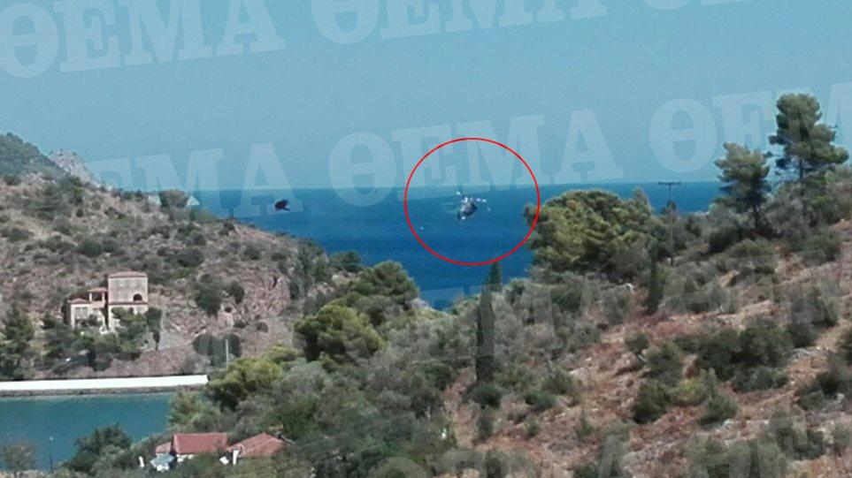 Στο βίντεο φαίνεται το ελικόπτερο να χτυπάει στα καλώδια της ΔΕΗ, να σημειώνεται έκρηξη και ένα δευτερόλεπτο αργότερα να πέφτει στο νερό.
