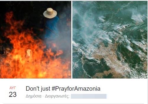 «Αφότου ανέλαβε την εξουσία ο Ζαΐχ Μπολσονάρου, οι δασικές πυρκαγιές πολλαπλασιάστηκαν, εξαιτίας της ξηρασίας, αλλά επίσης εξαιτίας της αποκρουστικής περιβαλλοντικής πολιτικής της βραζιλιάνικης κυβέρνησης, που δεν βλέπει τον Αμαζόνιο παρά σαν αγελάδα για άρμεγμα», συνεχίζει το κείμενο.