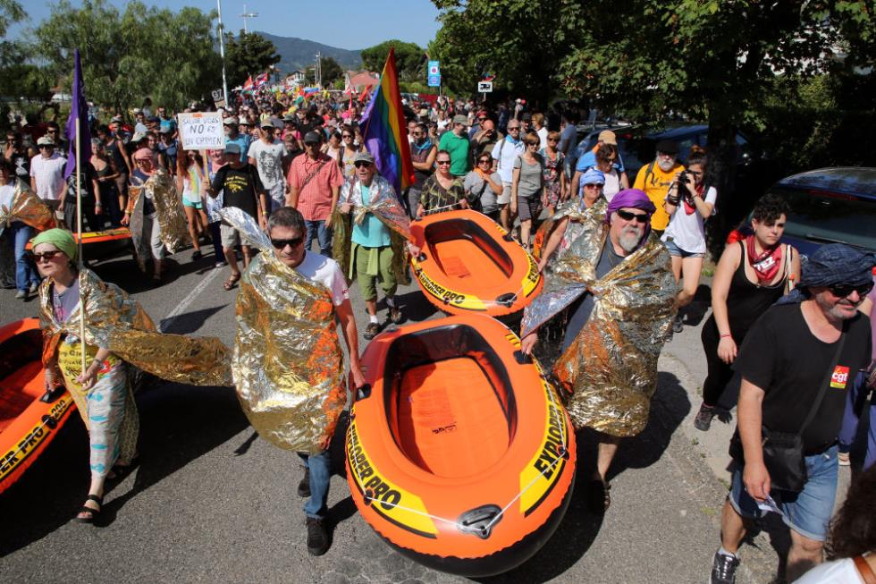 Την ίδια μέρα, διαδηλωτές ντυμένοι πυροσβέστες με τις «μάσκες» των επτά ηγετών που θα συναντηθούν στη Σύνοδο G7, διαμαρτυρήθηκαν για την ανισότητα στην αντιμετώπιση φυσικών καταστροφών ανά τον κόσμο. «Θέλουμε νέο σύστημα φορολόγησης όπου οι πλούσιοι θα πληρώνουν περισσότερους φόρους και θα βοηθηθούν οι αναπτυσσόμενες χώρες, θέλουμε δράση ενάντια στην κλιματική αλλαγή» αναφέρει εκπρόσωπος των διαδηλωτών που οργάνωσαν την δράση στην πόλη Μπιαρίτς όπου λαμβάνει χώρα η G7.