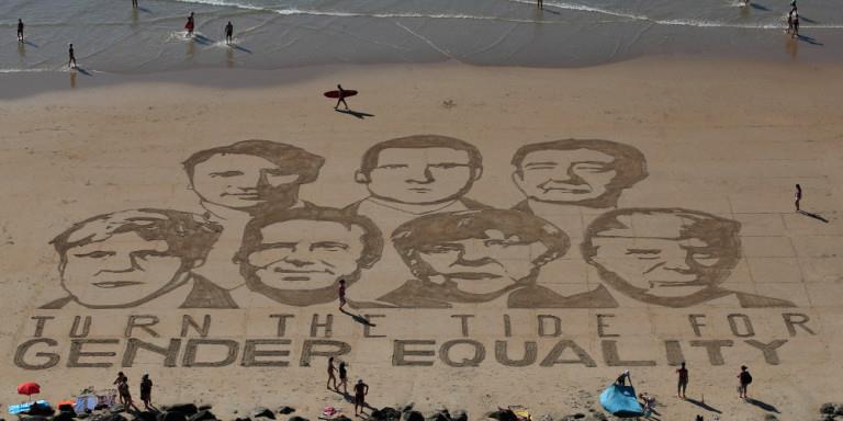 «Με τα σχέδια στην άμμο θέλουμε να μιλήσουμε στους 7 ηγέτες ώστε να κάνουν πραγματική πρόοδο και να μην μιλάνε για πράγματα που δεν θα πραγματοποιήσουν ποτέ» σημειώνει στο RT η διαδηλωτής. «Ξεκινήστε την παλίρροια υπέρ της ισότητας των φύλων» έγραφε το μήνυμα στην άμμο.