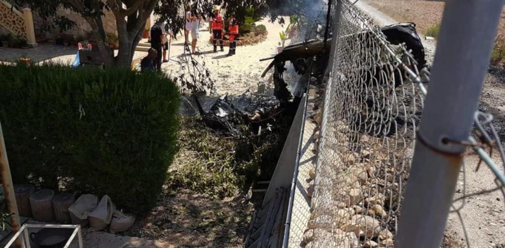 Όπως φαίνεται και στις πρώτες φωτογραφίες από το σημείο της πτώσης, τη ουρά του μικρού αεροσκάφους έχει σταματήσει πάνω στη μάντρα σπιτιού!