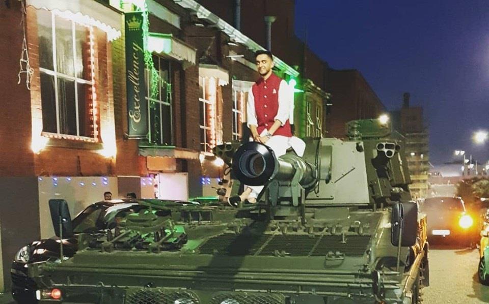 My man just turned up to his wedding in a tank...desis in Birmingham kill it 😂 pic.twitter.com/kV3UFMDnEE