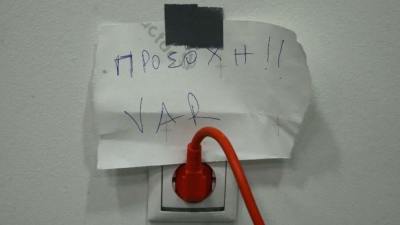 Στους χώρους που θα φιλοξενηθεί η παραγωγή και η υποστήριξη της μετάδοσης του αγώνα βρέθηκε μια πρίζα, που συνοδεύεται από την υπόδειξη «Προσοχή, VAR», ώστε να μη... διανοηθεί κάποιος να βγάλει το καλώδιο και προκαλέσει προβλήματα πριν τη σέντρα!