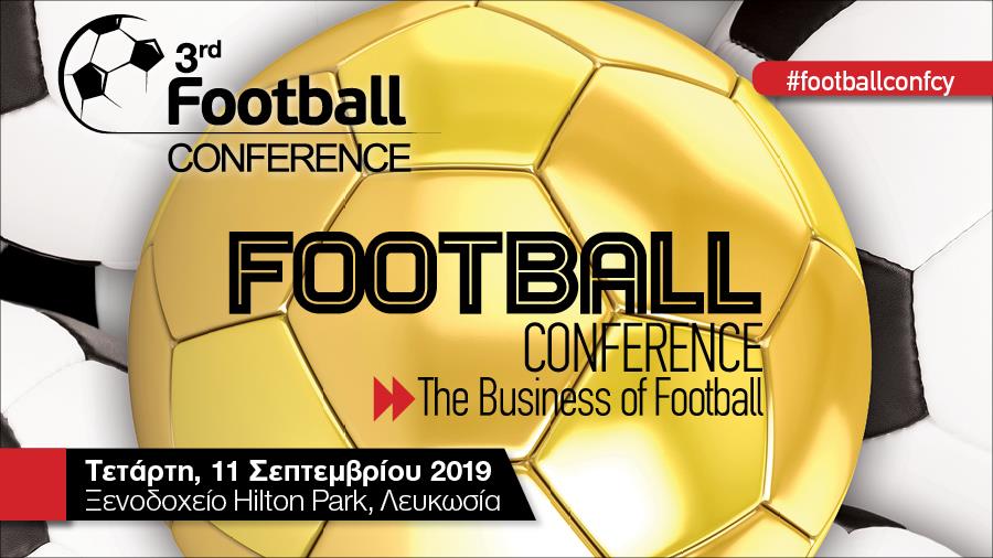Πανέτοιμο είναι το “3ο Football Conference” για να υποδεχτεί και φέτος τον ενθουσιώδη ποδοσφαιρικό κόσμο της Κύπρου και όχι μόνο. Το σύγχρονο Ποδόσφαιρο δεν είναι απλώς ένα δημοφιλές άθλημα με εκατομμύρια οπαδούς σε όλο τον πλανήτη. Το Ποδόσφαιρο είναι σήμερα από τις πλέον κερδοφόρες βιομηχανίες με απίστευτες προοπτικές περαιτέρω εξέλιξης κι εξάπλωσης. Δήλωσε τώρα συμμετοχή στο “3ο Football Conference” που παρουσιάζει η IMH, με τη στήριξη της Κυπριακής Ομοσπονδίας Ποδοσφαίρου (ΚΟΠ) και ενημερώσου από διακεκριμένους ομιλητές και τους καλύτερους του χώρου για τις ευκαιρίες, τις νέες προοπτικές και τάσεις από τον εντυπωσιακό κόσμο της Στρογγυλής Θεάς. Ραντεβού την Τετάρτη 11 Σεπτεμβρίου στο ξενοδοχείο Hilton Park, στη Λευκωσία.
