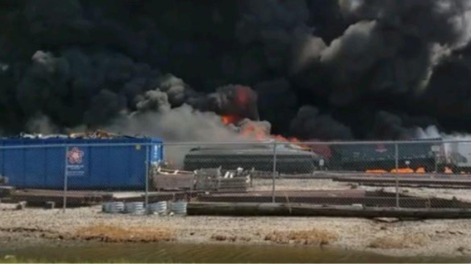 Στο μεταξύ, μεγάλη ανησυχία πυροδοτεί το τεράστιο σύννεφο καπνού που προκλήθηκε μετά τον εκτροχιασμό του τρένου.