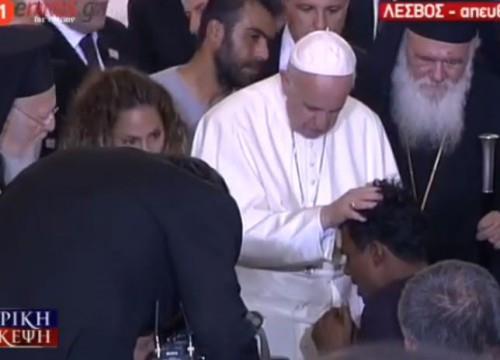 Μια συγκλονιστική στιγμή κατέγραψε ο τηλεοπτικός φακός από την επίσκεψη του Πάπα Φραγκίσκου μαζί με τον Οικουμενικό Πατριάρχη Βαρθολομαίο, τον Αρχιεπίσκοπο Ιερώνυμο και τον Πρωθυπουργό Αλέξη Τσίπρα, στο κέντρο υποδοχής και φιλοξενίας προσφύγων στη Μόρια. Την ώρα που ο Πάπας χαιρετούσε τους πρόσφυγες, ένας από αυτούς γονάτισε μπροστά του, ξέσπασε σε λυγμούς και ενώ φιλούσε τα χέρια του, ζήτησε την ευλογία του.