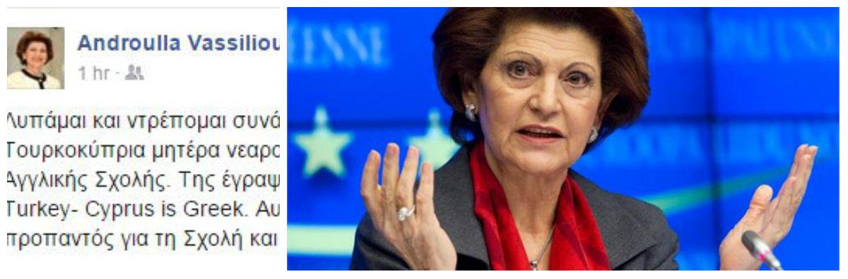 Την οργή της Αντρούλλας Βασιλείου προκάλεσε επεισόδιο που όπως η ίδια αναφέρει στον λογαριασμό της στο Facebook έγινε στη πρώτη τάξη της Αγγλικής Σχολής.