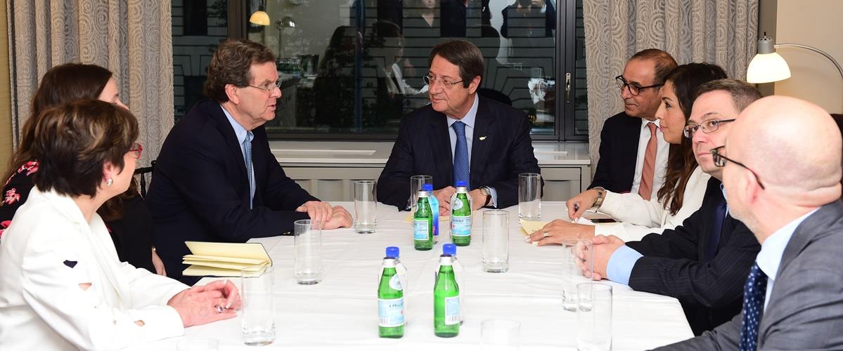 Για τις τελευταίες εξελίξεις στο Κυπριακό ενημέρωσε στελέχη της Αμερικανο-εβραϊκής Επιτροπής ο Πρόεδρος της Δημοκρατίας, Νίκος Αναστασιάδης, κατά τη διάρκεια συνάντησης που είχε χθες στη Νέα Υόρκη μαζί τους.
