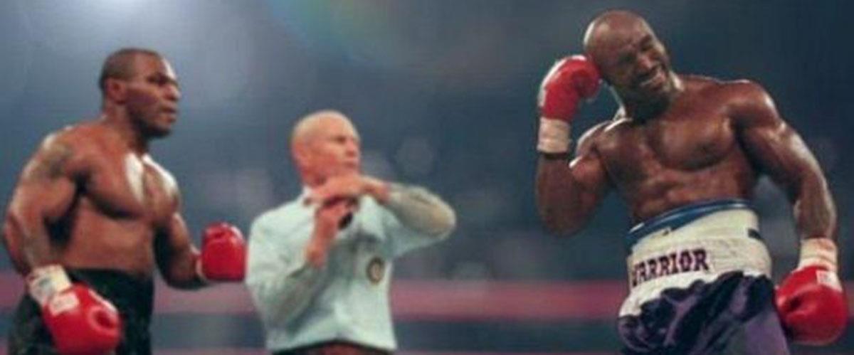 Η αναμέτρηση που ονομάστηκε ως "The Bite Fight" έγινε στις 28 Ιουνίου του 1997 για τον τίτλο WBA στην heavyweight κατηγορία. Ήταν ένα από τα πιο παράξενα παιχνίδια στην ιστορία του μποξ. Ο Tyson δάγκωσε τον Holyfield και αποβλήθηκε ενώ του αφαιρέθηκε η άδεια να αγωνίζεται.