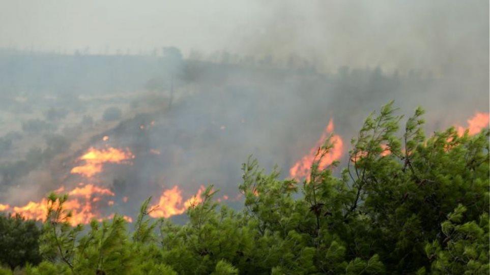 Η πυρκαγιά βρίσκεται σε δασική έκταση με πεύκα και σύμφωνα με τις μέχρι τώρα πληροφορίες δεν απειλούνται σπίτια.