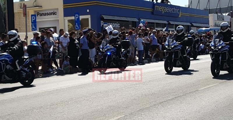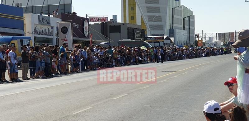 Την παρέλαση παρακολοθεί πλήθος κόσμου ενώ η Αστυνομία έχει λάβει αυξημένα μέτρα ασφαλείας.